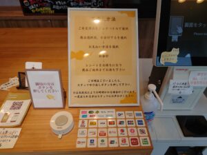 お会計はタッチパネルの機械で注文します。タッチパネル機械で使える決済方法は