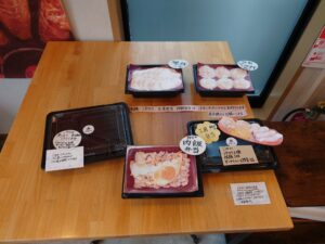 こちらの3種類の弁当とシウマイと焼豚はタッチパネルで注文すれば、お店の人が調理を始めて用意していただけます。5分ちょっとは時間かかります。