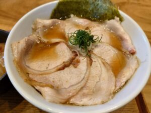 【限定麺】中華そば塩肉3枚とやきとりめしです。